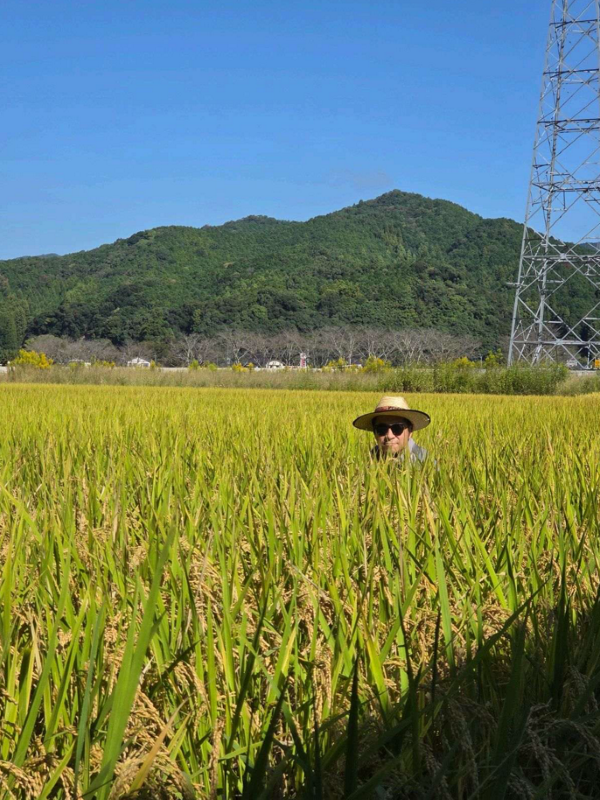 稲刈りを手伝い始めた当初は、義父と二人で黙々と作業してましたが、ここ数年は、義父の無農薬栽培に賛同した方々が加勢しに来てくれるので、ずいぶん楽をさせていただいてます。