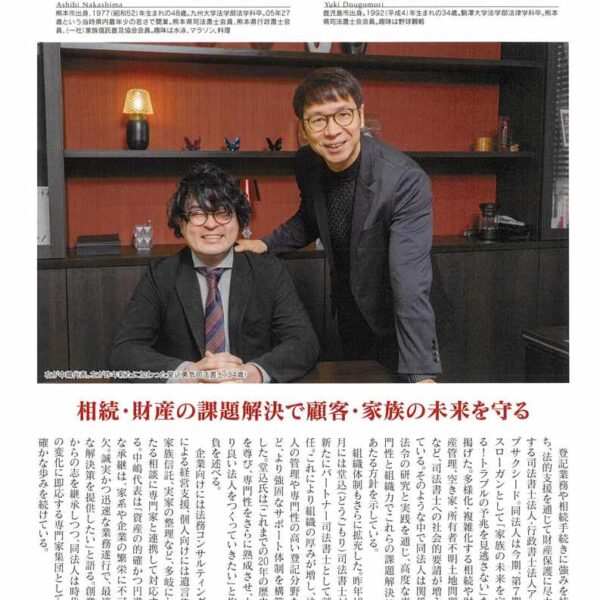 弊社代表の中嶋が、くまもと経済 3月号 に今年も掲載されました。 「家族の未来を守る!トラブルの予兆を見逃さない!」 私たちは、このスローガンを大切にしながら日 …