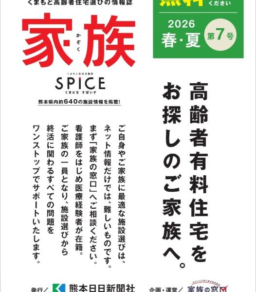 「くまにち すぱいす 家族 2026 春・夏 第7号」にて、弊社代表中嶋が「おひとりさま」の終活・相続・資産運用のためのアドバイスに関するお話をさせていただきま …